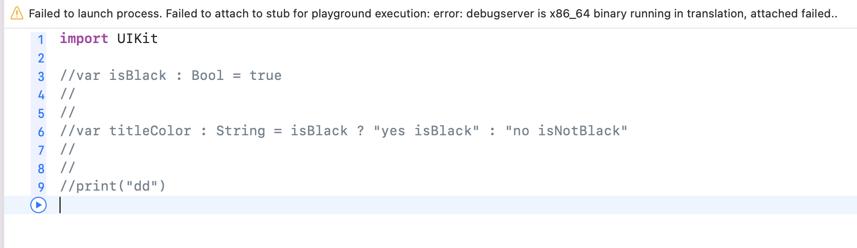회사에서 잘만되던 playground 디버깅이 안된다,, 보통 M1,2칩을 사용하는 Mac에서 발생하는 에러임